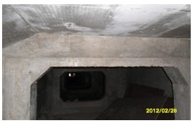 拆除時(shí)應(yīng)按順序由上而下、一步一清,不準(zhǔn)上下同時(shí)作業(yè)。拆除腳手架斜桿,應(yīng)先拆中間扣,再拆兩頭扣,由中間操作人往下桿子;拆除模板支架嚴(yán)禁猛撬、硬砸或大面積撬落和拉倒。完工前,不得留下松動(dòng)和懸掛的模板,拆下的模板應(yīng)及時(shí)運(yùn)送到指定地點(diǎn)集中堆放。采用內(nèi)箱模板整體安裝,混凝土一次性澆筑后的箱內(nèi)情況如圖5所示。