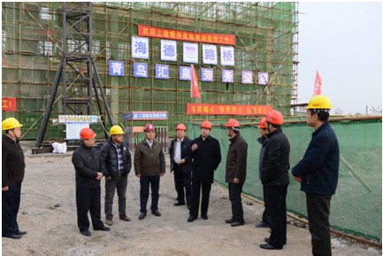 伴隨著十八大的勝利召開,我公司承建的青島餐廚垃圾處理廠工程主體部分已封頂。本工程是山東省首個餐廚垃圾處理廠項目、青島市市政府重點工程之一,因此備受各級領導關注。12月1日下午,山東省住房和城鄉(xiāng)建設廳副廳長耿慶海不畏嚴寒蒞臨工地指導工作,隨行陪同的還有市市政公用局副局長劉海波、項目建設方青島十方生物能源有限公司總經理潘建強、我公司總經理鞏光磊。耿廳長對戰(zhàn)斗在一線的施工人員表示了親切的慰問,對施工現場的文明施工、安全保證、質量控制、工程進度給予充分肯定,使項目部全體參建人員倍受鼓舞。