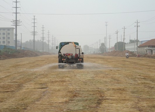 為保證工程質(zhì)量,項(xiàng)目部在水泥穩(wěn)定碎石基層攤鋪完成并壓實(shí)后立即在表層覆蓋草簾并灑水養(yǎng)護(hù),并連續(xù)三天灑水保持表面濕潤(rùn)。施工現(xiàn)場(chǎng)還安排專人看護(hù),每天定時(shí)灑水養(yǎng)護(hù),禁止大型車輛通行。