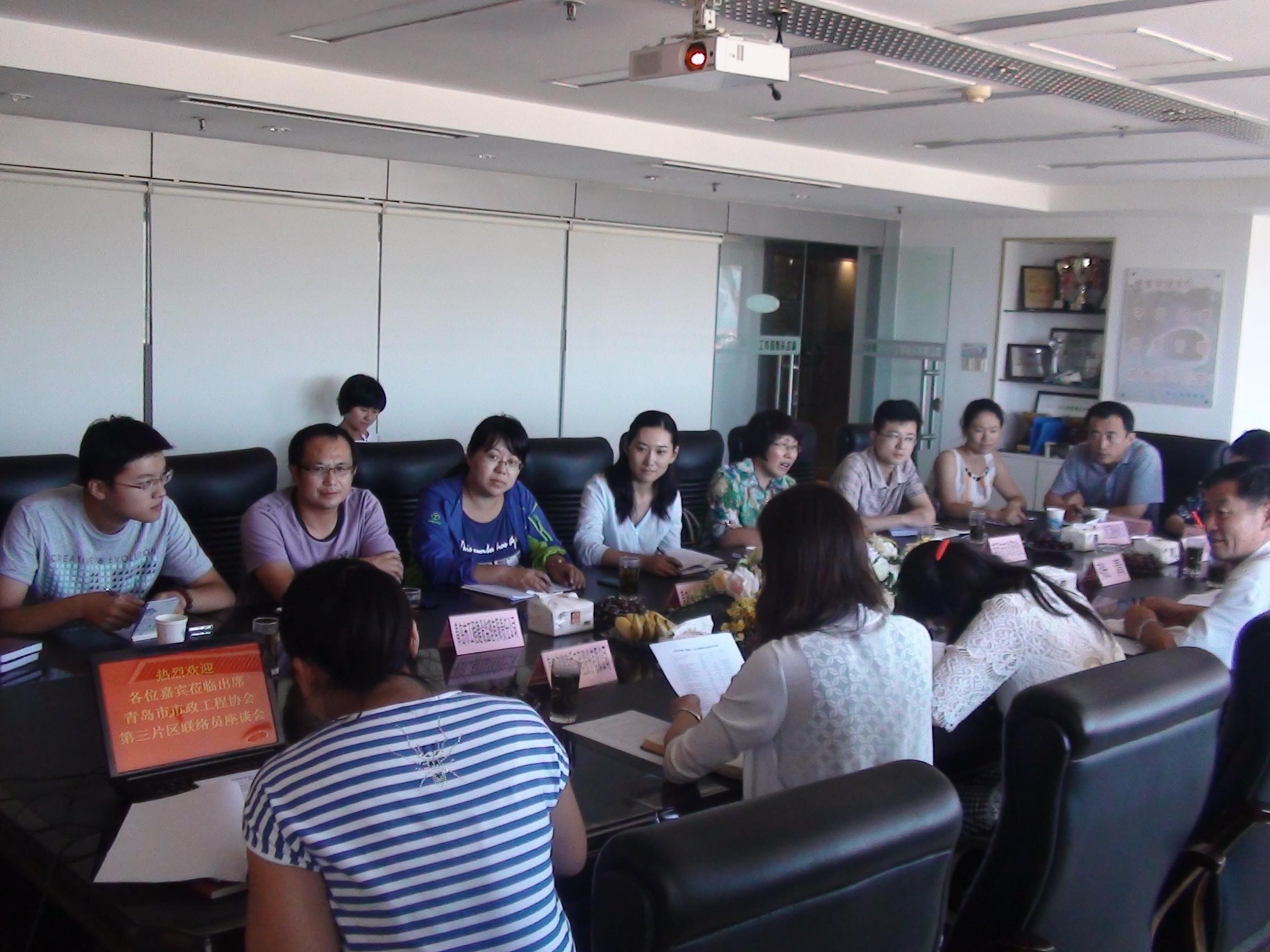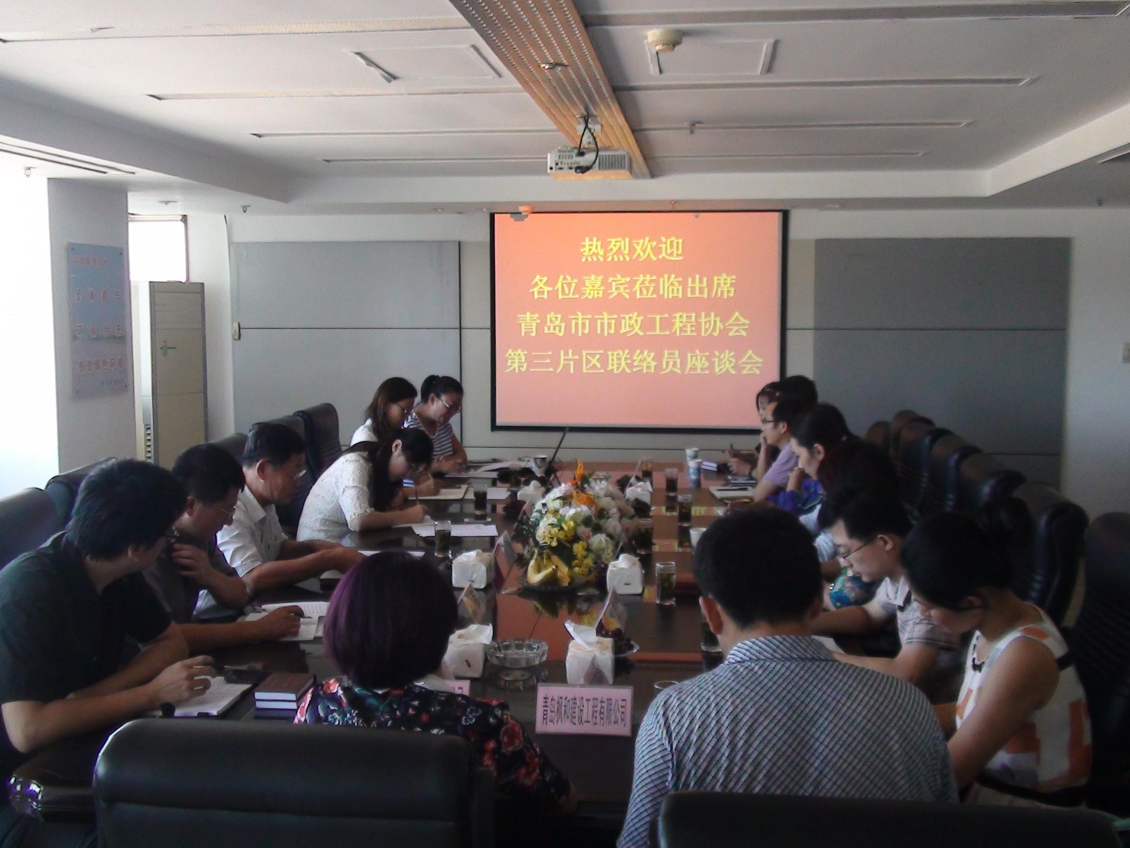 2014年9月4日下午14點,由青島市市政工程協(xié)會發(fā)起組織、我單位主辦的協(xié)會第三片區(qū)首次聯(lián)絡(luò)員座談會在我公司會議室召開。青島市市政工程協(xié)會副會長王國良、秘書處副秘書長張青、三片區(qū)組長單位青島海德路橋工程股份有限公司執(zhí)行總裁寇媛媛出席了本次座談會,參加此次會議的還有片區(qū)副組長單位青島市益水工程股份有限公司、青島市政監(jiān)理咨詢有限公司、萊西市市政管理處以及片區(qū)其他會員單位的聯(lián)絡(luò)員,共計15家單位。