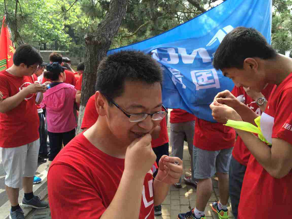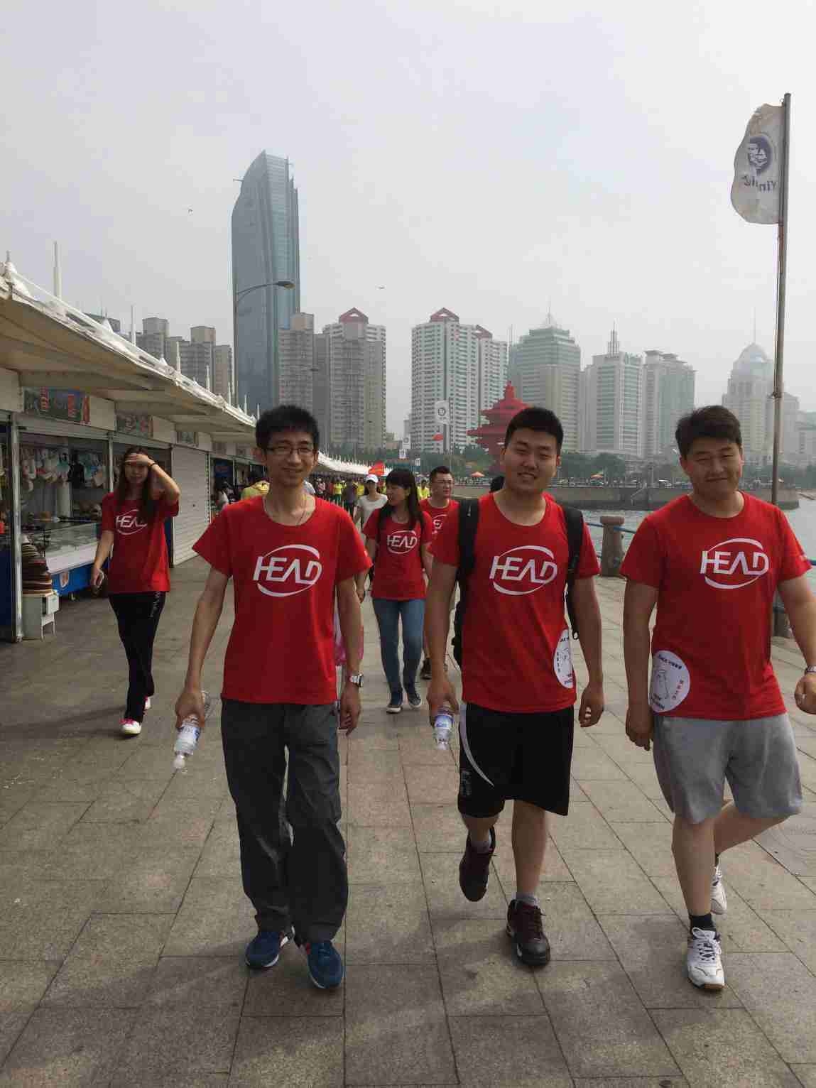 此次活動分為健步走和競技跑兩項,均由五四廣場開跑,終點設(shè)在集團總部大樓正門。其中,健步走活動走完全程即為完成,而競技跑活動在比賽過程中需要完成10人綁腿跑、穿針引線、跳繩一百個、每人喝完一瓶可樂四項任務(wù)?;顒赢斕?,海德員工早早來到五四廣場,進行競技跑比賽前最后一次訓練??粗聜兎e極備戰(zhàn)的樣子,參加健步走的同事也有一種躍躍欲試的沖動。