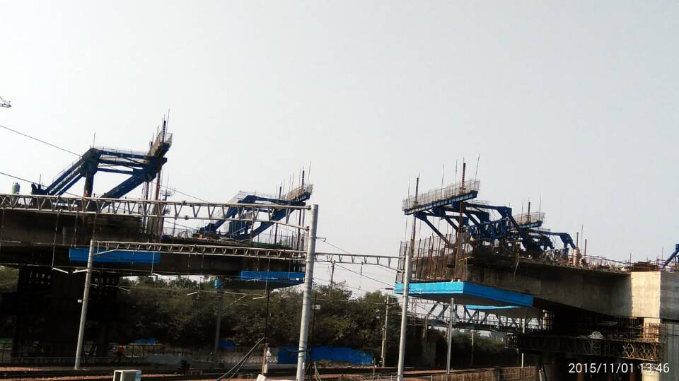 2016年1月7日下午1點(diǎn),鄭州市京廣快速路(北三環(huán)-連霍高速)京廣鐵路立交工程掛籃橋左幅中跨合龍段正式開始砼澆筑。經(jīng)過五個小時的緊張有序施工,左幅順利合龍,標(biāo)志著本工程主體結(jié)構(gòu)全部完成。
