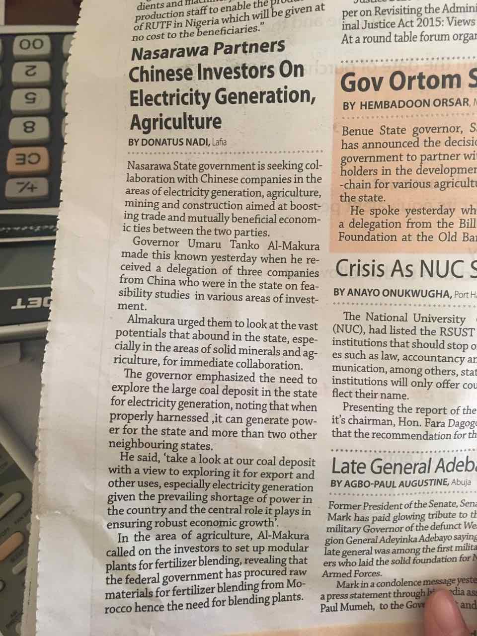 2017年3月9日,在尼日利亞納薩拉瓦(NASARAWA )州的州政府,總裁鞏光磊一行拜訪了州長、州政府內(nèi)閣全體成員。州長Al-Makura贈送給總裁鞏光磊“友誼金牌”以作紀(jì)念。尼日利亞國家主流媒體、納薩拉瓦州官方媒體均做此次訪問相關(guān)報道。
