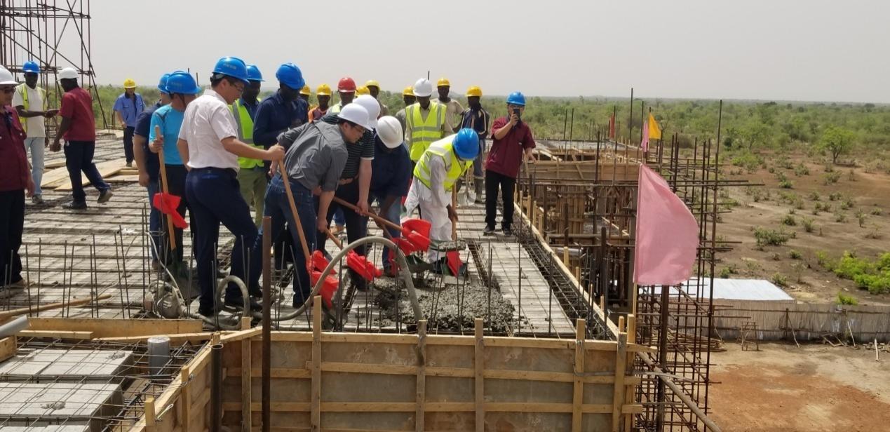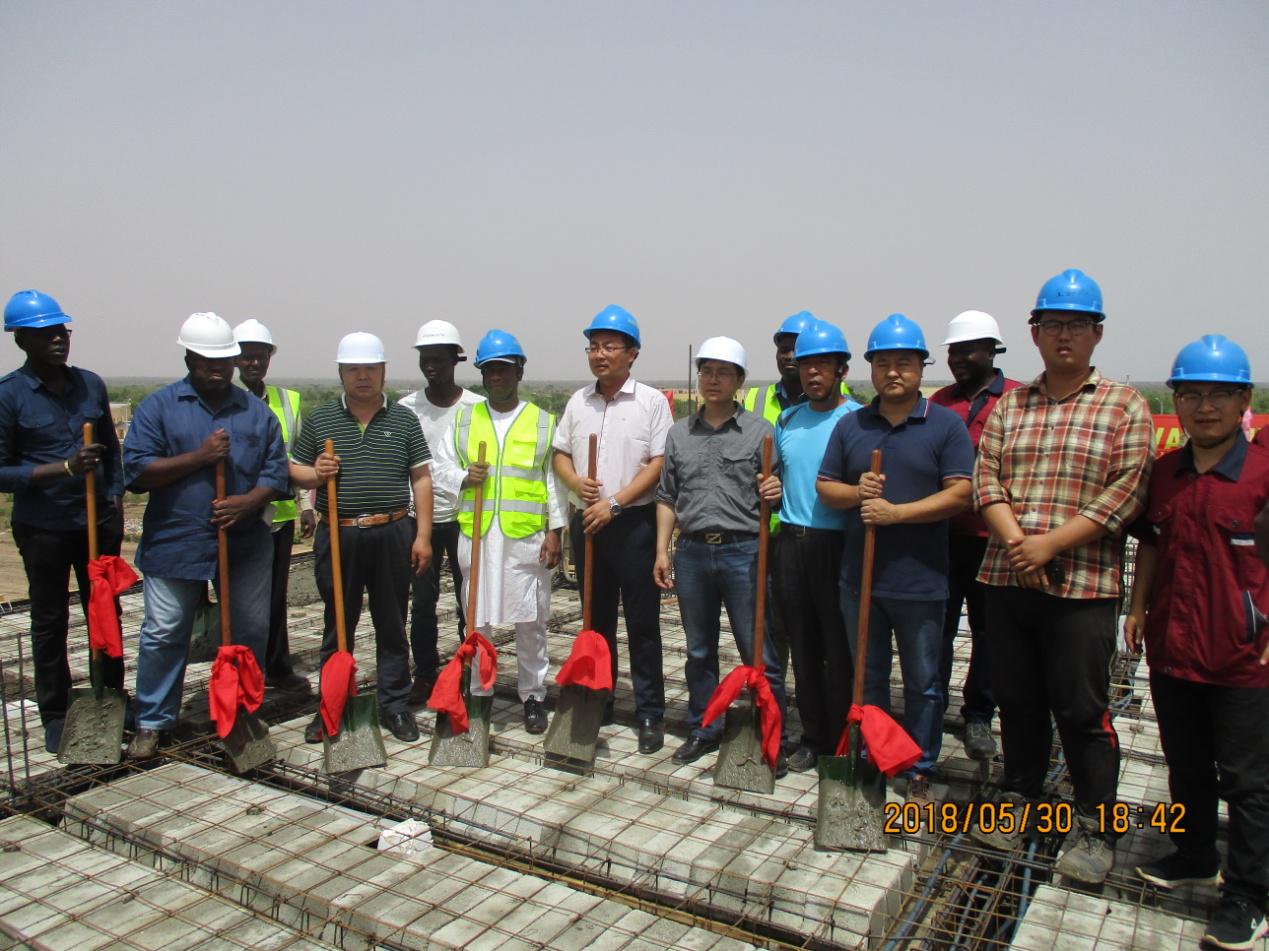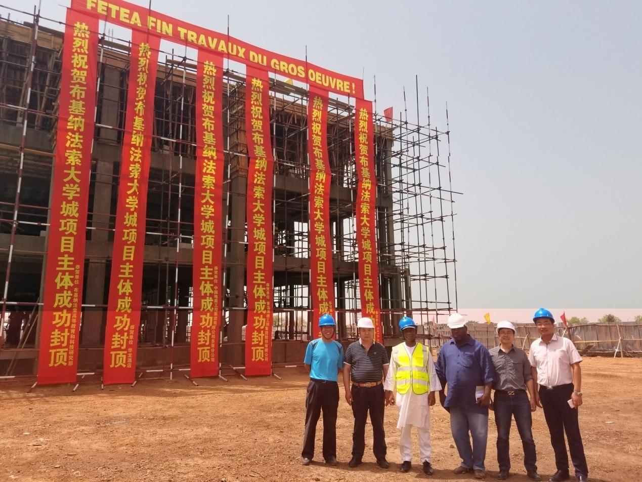 伴隨著中國(guó)和布基納法索正式恢復(fù)大使級(jí)外交關(guān)系的喜訊,當(dāng)?shù)貢r(shí)間2018年5月29日上午10時(shí),由我集團(tuán)公司承建施工的布基納法索首都瓦加杜古第二大學(xué)城項(xiàng)目暨行政樓工程主體結(jié)構(gòu)歷時(shí)6個(gè)月也喜迎封頂。業(yè)主代表Babby先生、監(jiān)理代表Wattara先生、集團(tuán)副總裁兼國(guó)際部總經(jīng)理莊作鵬、集團(tuán)副總裁楊金山等到現(xiàn)場(chǎng)參加了封頂儀式。