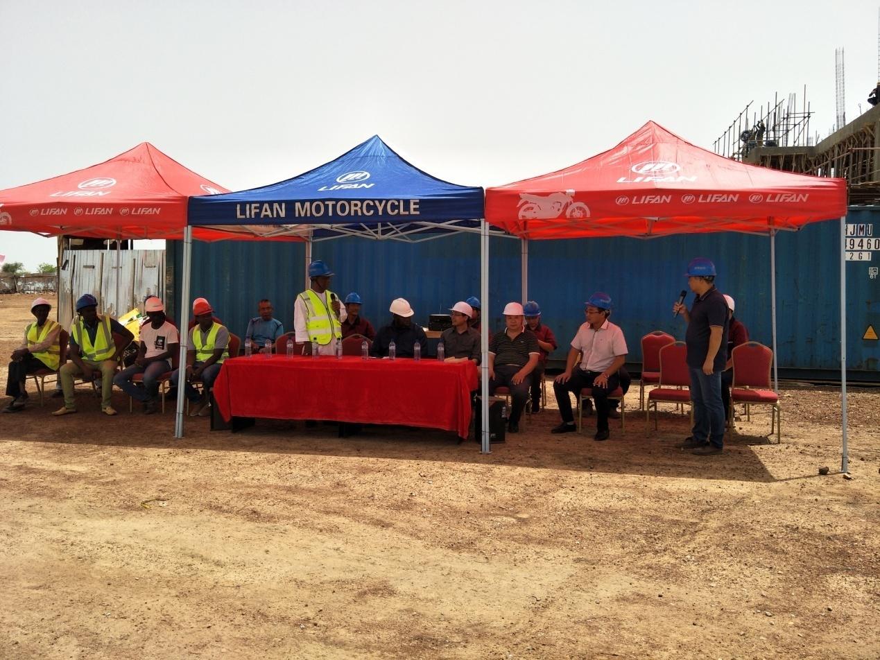 儀式上,業(yè)主代表Babby先生致辭,首先對(duì)我方在項(xiàng)目建設(shè)中的進(jìn)度與質(zhì)量表示高度贊賞,并祝賀封頂順利。同時(shí)對(duì)公司兩位領(lǐng)導(dǎo)從中國(guó)來(lái)到布基納法索表示歡迎。監(jiān)理公司代表Wattara先生也對(duì)我方的工作進(jìn)行了肯定與表?yè)P(yáng)。項(xiàng)目經(jīng)理王開(kāi)軍對(duì)業(yè)主、監(jiān)理在工作中的支持與幫助表示感謝及支持!