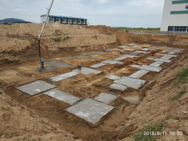 2018年9月11日,晴空萬(wàn)里,在業(yè)主、監(jiān)理及項(xiàng)目部各負(fù)責(zé)人的見(jiàn)證下,隨著基坑西北側(cè)最后一個(gè)獨(dú)立柱基礎(chǔ)墊層混凝土的澆筑完成,由我公司承建的即墨田橫食堂項(xiàng)目混凝土墊層順利完成澆筑。