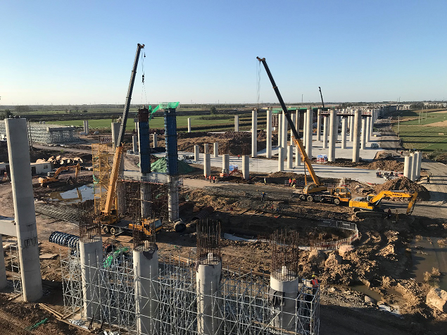 新機(jī)場高速公路項(xiàng)目(一期工程先期實(shí)施段)位于青島膠州市,是青島膠東國際機(jī)場整體項(xiàng)目的重要交通樞紐工程。我公司承建其6座匝道橋。計(jì):鉆孔灌注樁355根、樁基系梁84根、墩柱84排、墩柱系梁52根、蓋梁24根、現(xiàn)澆箱梁24聯(lián)。全橋平均高度為19米,混凝土方量約8萬立方米。
