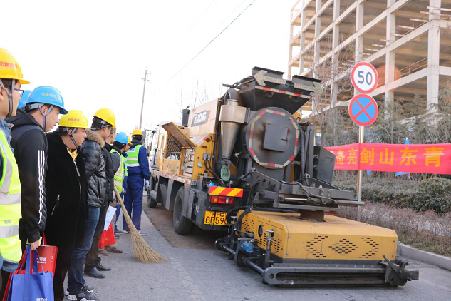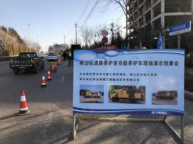 為促進(jìn)城市道路養(yǎng)護(hù)新技術(shù)、新工藝、新設(shè)備的應(yīng)用,提高市政道路養(yǎng)護(hù)水平和養(yǎng)護(hù)施工效率,全面提升市政道路完好指數(shù),確保我市市政設(shè)施良好運(yùn)行,由青島市市政工程管理處及嶗山區(qū)市政公用局主辦、青島海德工程集團(tuán)股份有限公司承辦,各區(qū)(市)市政管理部門(mén)參加的市政道路多功能養(yǎng)護(hù)車(chē)現(xiàn)場(chǎng)演示觀摩會(huì),于2019年1月29日青島市嶗山區(qū)科苑緯四路(科苑緯四路與科苑經(jīng)二路交叉口東側(cè))舉行。青島市市政工程管理處司磊處長(zhǎng)、劉勇副處長(zhǎng)及嶗山區(qū)市政公用局李文局長(zhǎng)、曲宏偉副局長(zhǎng)、王甜田科長(zhǎng)等多位領(lǐng)導(dǎo)出席了觀摩會(huì),青島海德集團(tuán)鞏光磊總裁陪同觀摩,各區(qū)(市)養(yǎng)護(hù)管理部門(mén)40多位領(lǐng)導(dǎo)參加觀摩。
