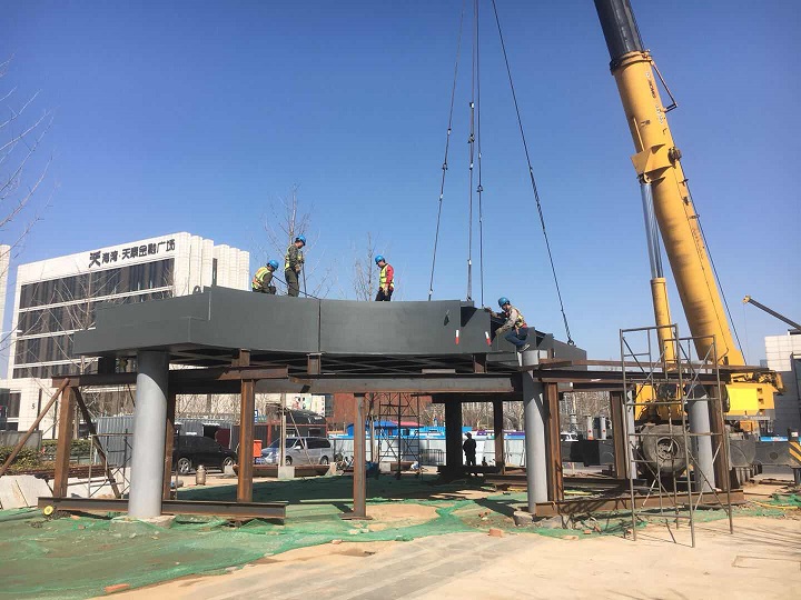 由我集團(tuán)承建的膠州市南中軸澳門(mén)路段廊橋工程,經(jīng)項(xiàng)目部全體人員眾志成城,克服各種難題,在各方不懈努力下,鋼結(jié)構(gòu)主體分塊吊裝全部完成。整個(gè)橋體包括8個(gè)分塊,B1、B8推坡道, B2-B7橋面結(jié)構(gòu),T1、T2梯道組成。緊跟焊接工作將在未來(lái)一周內(nèi)完成。