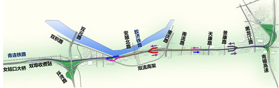 新機(jī)場高速連接線(雙埠.夏莊段)作為東岸城區(qū)與新機(jī)場最短, 最快捷的聯(lián)系通道,建成后將與青銀高速、跨海大橋接線、環(huán)灣路等既有城市快速路以及黑龍江路、重慶路等南北向城市干道共同形成東岸城區(qū)快速通達(dá)新機(jī)場的便捷路網(wǎng)體系。作為橫向聯(lián)系膠州灣高速和青銀高速的交通中樞, 新機(jī)場高速連接線(雙埠-夏莊段)不論是在中心城區(qū)快速路網(wǎng)銜接、還是在機(jī)場交通快速疏解方面,均具有不可替代的重要功能, 亟需在新機(jī)場轉(zhuǎn)場運(yùn)營前盡快開工建設(shè)。