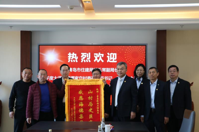 2020年1月21日上午,平度大澤山鎮(zhèn)譚家夼村委書記孫夕臣、村委主任譚新山,平度電視臺記者譚軍一行到訪集團贈送錦旗。青島市住建局胡樂常副局長、集團董事長鞏光磊、執(zhí)行總裁寇媛媛、執(zhí)行總裁孫成山,集團副總裁、工會主席呂同占,二分公司副總經(jīng)理夏志良在集團會議室出席此次活動。