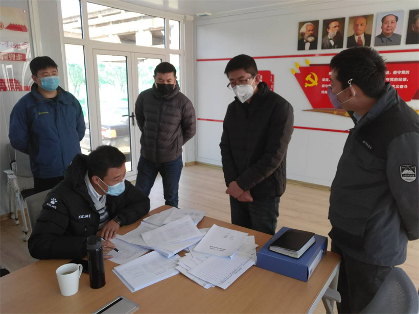 為確保項目順利復(fù)工,項目部在做好現(xiàn)場安全防護、揚塵治理、機械設(shè)備調(diào)試等常規(guī)措施外,采取各項措施防控疫情,宣傳教育、日常消毒、工人隔離、員工分餐,設(shè)置檢查站、設(shè)立黨員示范崗等抓落實、抓效果,保證每個人的生命安全和身體健康。