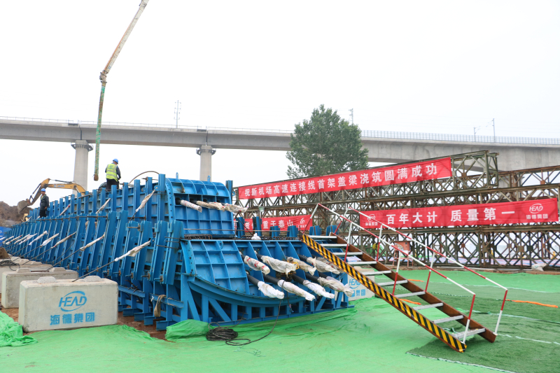 2020年6月17日10點17分,伴隨著機器的轟鳴,集團承建的新機場高速連接線(雙埠-夏莊段)工程蓋梁澆筑正式開始,工人們冒雨對重達358噸的蓋梁混凝土進行澆筑。該蓋梁的順利澆筑,標志著新機場高速連接線上部結構施工正式進入攻堅階段,預制箱梁安裝也進入倒計時,我集團公司的施工進程已走在全線的前列。