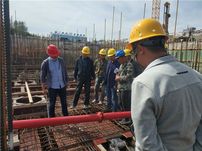 質(zhì)監(jiān)站對(duì)水廠箱體負(fù)二層模板、鋼筋樣板檢查