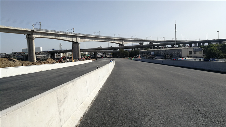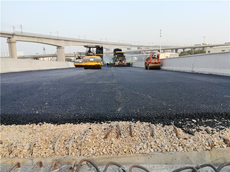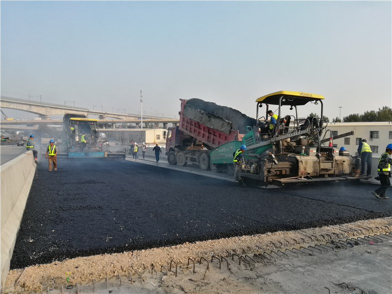 11月2日14時,在我集團承建的新機場高速連接線(雙埠-夏莊段)工程一標段施工現(xiàn)場,攤鋪機階梯式排列、人員分工協(xié)作,自卸車上傾倒而下的滾燙的瀝青持續(xù)不斷地攤鋪到路面上,首段主線瀝青正式開鋪。集團公司在全線十多家參建單位中拔得頭彩,第一家開展瀝青面層攤鋪作業(yè)。