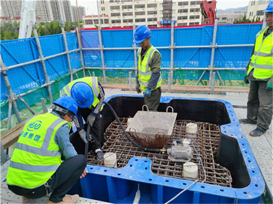 項目部經(jīng)理精心部署抓管理,管理人員認真落實促生產(chǎn),首件墩柱采用了許多新技術(shù)。圓形混凝土墊塊,鋼筋保護層合格率大幅度提升;應(yīng)用304不銹鋼接地端子,接地電阻0.3歐姆遠低于設(shè)計4歐姆;墩柱防護采用新型盤扣腳手架雙排方格網(wǎng)布置,澆筑平臺全封閉,安全可靠,操作方便,墩柱安全防護提升行業(yè)標準,引領(lǐng)行業(yè)新標桿。