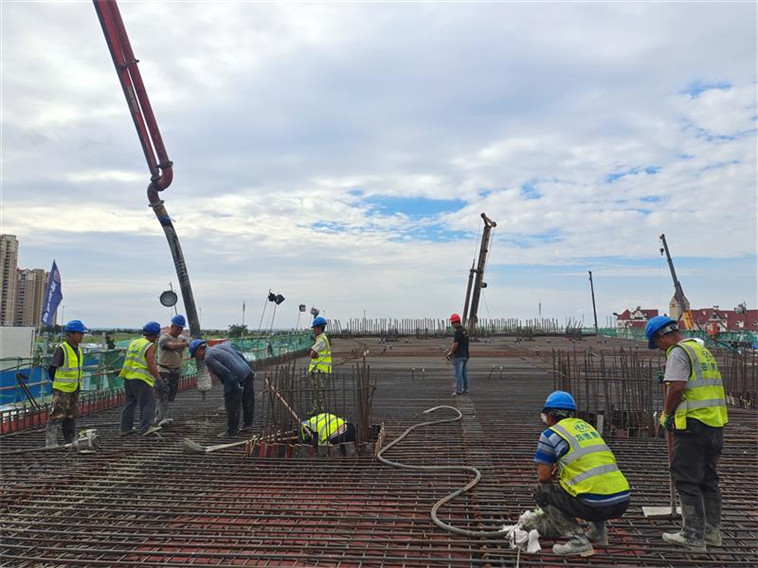 在長達46小時的澆筑過程中,集團公司高度重視,派駐專家組到施工現(xiàn)場,幫助項目組織協(xié)調(diào)、充實技術(shù)力量,全程監(jiān)督作業(yè),確保澆筑的順利完成。