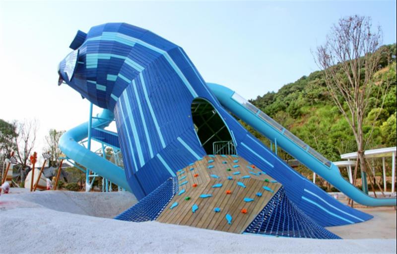 從空中鳥瞰三明兒童公園,像一只翩翩起舞的蝴蝶。蝴蝶翅膀外圈是800米長(zhǎng)的健身跑道;左蝶翼是小紅軍營(yíng)地、星云樂(lè)園、迷霧森林,小紅軍營(yíng)地游樂(lè)設(shè)施在設(shè)計(jì)中蘊(yùn)含了紅軍爬雪山、過(guò)草地、強(qiáng)渡瀘定橋等我們中國(guó)共產(chǎn)黨人在紅軍路上的一些場(chǎng)景,對(duì)孩子們今后的成長(zhǎng)起到了特殊意義;右蝶翼是瘋狂動(dòng)物城、戲水區(qū)、消防小勇士營(yíng)地,消防小勇士營(yíng)地里的滑道、消防知識(shí)宣傳欄、消防車等給孩子們普及著消防知識(shí),提高孩子們的生存技能;蝶腹中間是星星廣場(chǎng)、星光草場(chǎng)、星耀構(gòu)架三個(gè)主體場(chǎng)地,星星廣場(chǎng)及星耀構(gòu)架等一系列的主體理念是國(guó)旗上的五角星,在實(shí)際游玩中可以適當(dāng)?shù)囊龑?dǎo),讓小朋友們聯(lián)想到我們國(guó)旗上的五角星,從而拓展國(guó)旗的紅色教育。
