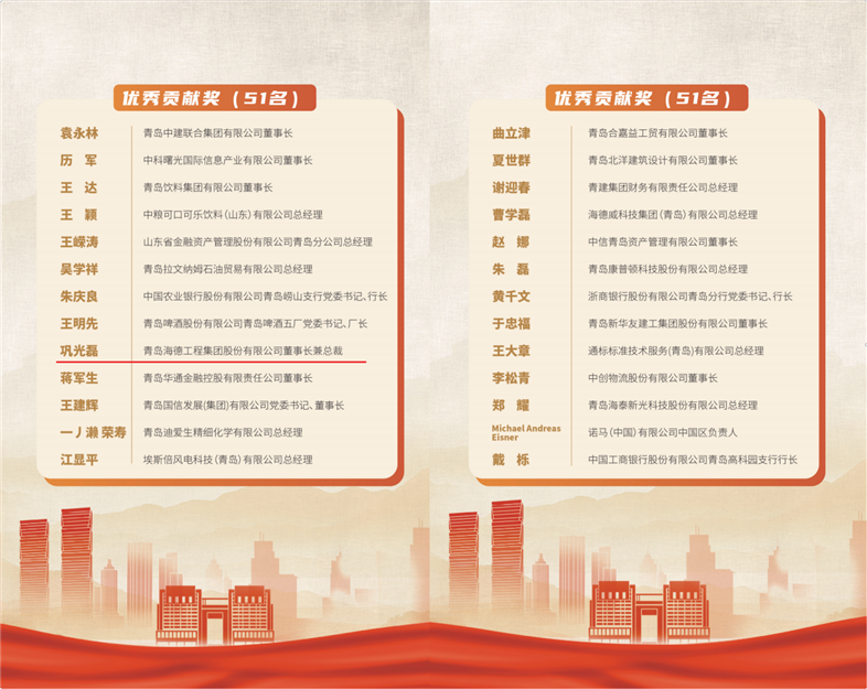 5月16日,嶗山區(qū)高規(guī)格召開(kāi)區(qū)委人才工作會(huì)議暨優(yōu)秀企業(yè)家表彰大會(huì),對(duì)于GDP破千億起點(diǎn)再出發(fā)的嶗山而言,有著不同尋常的意義。嶗山區(qū)注冊(cè)資本億元以上企業(yè)983家,占全市10.59%;5億元以上企業(yè)244家,占全市15.35%;10億元以上企業(yè)137家,占全市17.84%?,F(xiàn)場(chǎng)揭曉了獲得嶗山區(qū)發(fā)展功勛獎(jiǎng)、杰出成就獎(jiǎng)、優(yōu)秀貢獻(xiàn)獎(jiǎng)、新銳貢獻(xiàn)獎(jiǎng)等73名企業(yè)家,青島市政協(xié)副主席、嶗山區(qū)委書(shū)記張?jiān)瑣魃絽^(qū)區(qū)長(zhǎng)楊克敏出席會(huì)議并為獲獎(jiǎng)?wù)哳C獎(jiǎng)。我集團(tuán)董事長(zhǎng)鞏光磊連續(xù)三年榮獲“優(yōu)秀貢獻(xiàn)獎(jiǎng)”。