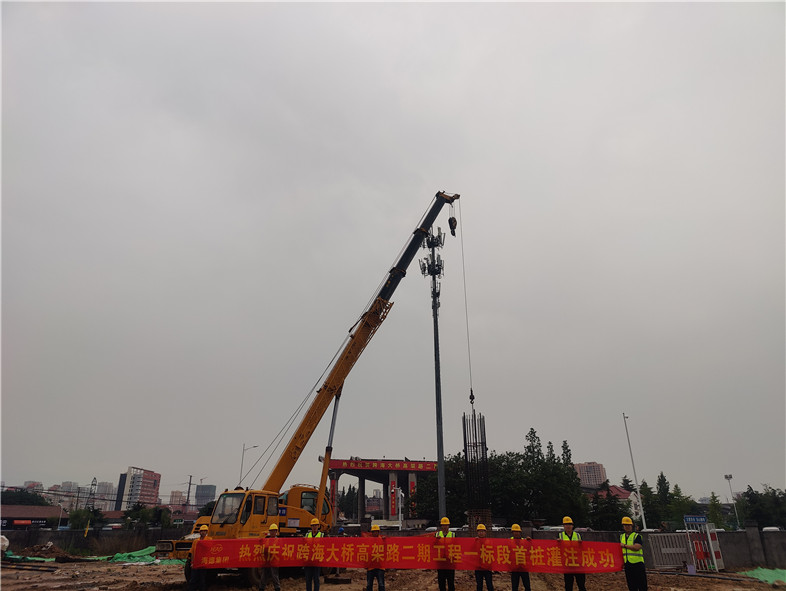 2022年6月14日21時(shí)38分,由我集團(tuán)二分公司負(fù)責(zé)施工的跨海大橋高架路二期工程一標(biāo)段首樁成功澆筑,打響了全線施工的第一槍?zhuān)瑯?biāo)志著該工程進(jìn)入主體施工階段。