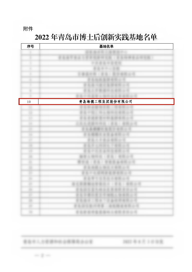 近日,青島市人力資源和社會(huì)保障局公布了2022年青島市博士后創(chuàng)新實(shí)踐基地名單,經(jīng)過申報(bào)、區(qū)市初審及復(fù)審、集中答辯、實(shí)地考察等環(huán)節(jié)層層篩選,最終,集團(tuán)公司成功獲批設(shè)立青島市博士后創(chuàng)新實(shí)踐基地。
