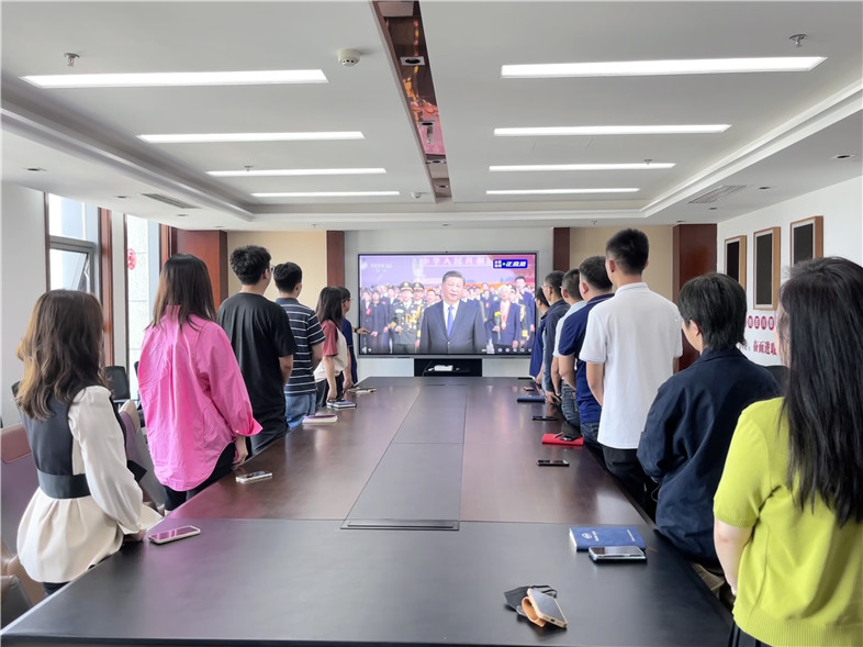 隨著儀式的進(jìn)行,在莊嚴(yán)的革命英雄紀(jì)念碑前,兩排禮兵為革命英烈敬獻(xiàn)花籃,習(xí)近平總書記帶領(lǐng)黨和國家領(lǐng)導(dǎo)人一同出席,和各界代表一起全體為他們默哀,寄托對革命英烈的哀思之情,在會議室觀看直播的集團(tuán)員工也全體起立一同默哀。整個觀看活動中,全體人員神情肅穆,緬懷著英勇犧牲的先烈們,從英烈們的感人事跡和崇高精神中吸取了正能量。