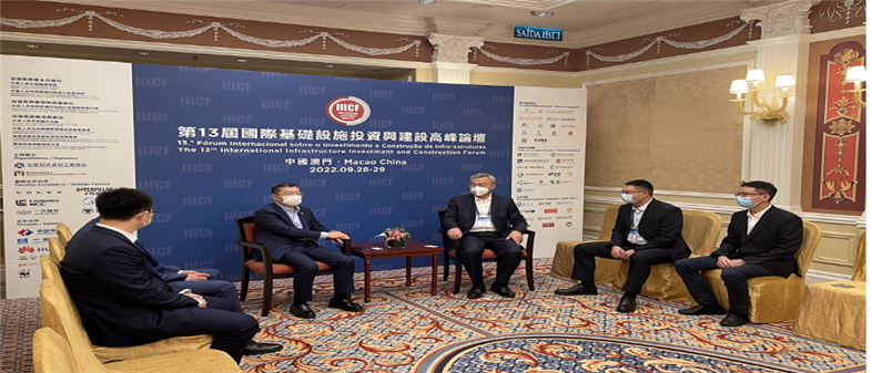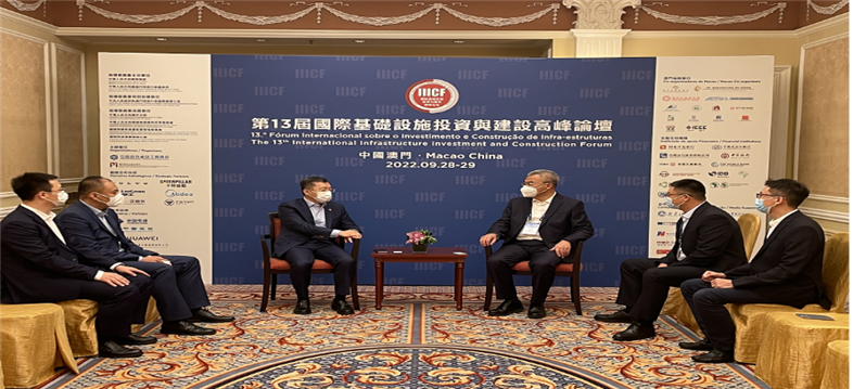 9月28日,由中國(guó)對(duì)外承包工程商會(huì)和澳門貿(mào)易投資促進(jìn)局共同主辦的第13屆國(guó)際基礎(chǔ)設(shè)施投資與建設(shè)高峰論壇在澳門開(kāi)幕。澳門特別行政區(qū)行政長(zhǎng)官賀一誠(chéng)、中央人民政府駐澳門特別行政區(qū)聯(lián)絡(luò)辦公室主任鄭新聰、外交部駐澳門特別行政區(qū)特派員公署特派員劉顯法、澳門特別行政區(qū)政府保安司司長(zhǎng)黃少澤,以及有關(guān)國(guó)家駐澳門外交使節(jié),國(guó)際金融機(jī)構(gòu)及跨國(guó)企業(yè)高管等47位貴賓共同主禮開(kāi)幕式。我集團(tuán)董事長(zhǎng)鞏光磊,集團(tuán)副總裁、海外分董事長(zhǎng)白正海,海外分副總經(jīng)理譚翔共赴澳門參會(huì)。