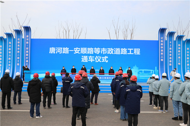 12月26日上午,唐河路-安順路、遼陽路快速路、勁松五路、株洲路、棗山東路、銅川路等6條市政道路集中通車儀式在我集團(tuán)承建的唐河路-安順路工程現(xiàn)場(chǎng)順利舉行。市住房城鄉(xiāng)建設(shè)局、市北區(qū)、李滄區(qū)、城陽區(qū)相關(guān)負(fù)責(zé)領(lǐng)導(dǎo),城投集團(tuán)、財(cái)通集團(tuán)及我集團(tuán)等各參建企業(yè)代表參加儀式。