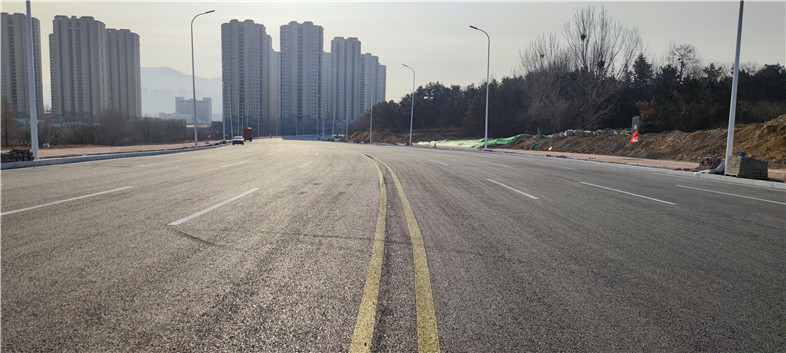 集團(tuán)承建的唐河路-安順路打通工程作為我市技術(shù)、理念創(chuàng)新的樣板工程,實(shí)現(xiàn)了五大亮點(diǎn):一是綠色建造-天然石材“零使用”。創(chuàng)新打造國內(nèi)首例25公分寬人造仿石混凝土路緣石,全線7萬米路緣石、界石、花壇石,5.6萬平方米人行道板均采用人造仿石替代花崗巖、大理石等常規(guī)建設(shè)材料,在全市首次實(shí)現(xiàn)天然石材“零使用”。二是搭建積木-推廣裝配式施工工藝。充分發(fā)揮裝配式施工“標(biāo)準(zhǔn)化設(shè)計(jì)、工廠化生產(chǎn)、裝配化施工”的優(yōu)勢(shì),全線橋梁和管廊標(biāo)準(zhǔn)段采用預(yù)制裝配式結(jié)構(gòu)。綜合管廊標(biāo)準(zhǔn)段均采用雙艙矩形預(yù)制裝配式結(jié)構(gòu),是青島市首次采用整體式綜合艙室預(yù)制管廊。預(yù)制管廊結(jié)構(gòu)長(zhǎng)11.35米、高4.5米、板厚0.5米,單節(jié)寬1.5米、重量超過60噸。管廊建成后,電力、通信、給水、供熱、再生水等5種管線集中入廊敷設(shè),最大限度實(shí)現(xiàn)土地集約化利用。較傳統(tǒng)模式,可節(jié)約工期約20%,節(jié)省現(xiàn)場(chǎng)作業(yè)人員及用地約50%,減少建筑垃圾排放約70%。三是集約賦能-踐行多桿合一、多箱整合。路燈、交通設(shè)施等桿件由808處合并設(shè)置為590處。電力、通信等零散箱體由149處整合為33處,打造集約節(jié)約新模式。四是生態(tài)優(yōu)先-打造“海綿城市”示范工程。運(yùn)用“滲、滯、蓄、凈、用、排”原理,沿線設(shè)置9萬平透水鋪裝,3.3萬平下沉式綠地,高標(biāo)準(zhǔn)落實(shí)海綿城市理念;五是功能完備-系統(tǒng)化打造復(fù)合走廊。道路交通順暢:全線設(shè)置高標(biāo)準(zhǔn)、系統(tǒng)化的交通流量采集和智慧信控系統(tǒng),打造貫通南北的交通出行“綠波帶”,實(shí)現(xiàn)準(zhǔn)快速路功能,緩解我市南北交通壓力;它的建成投入使用對(duì)完善青島主干路網(wǎng)體系,加強(qiáng)主城區(qū)與青島膠東國際機(jī)場(chǎng)的交通聯(lián)系,疏解青島火車北站進(jìn)出壓力,分擔(dān)環(huán)灣路、重慶路現(xiàn)行超飽和的交通流起到重要作用。