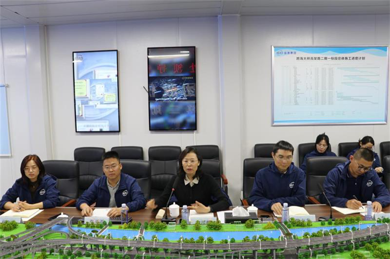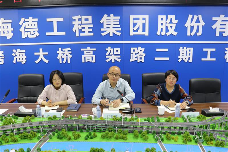 副處長江夢(mèng)策一行首先聽取了跨海大橋高架路二期項(xiàng)目總體概況和工程亮點(diǎn)的匯報(bào),并參觀了項(xiàng)目現(xiàn)場(chǎng);隨后與集團(tuán)商務(wù)人員進(jìn)行了座談和交流。集團(tuán)公司執(zhí)行總裁寇媛媛對(duì)江夢(mèng)策一行的到來表示熱烈歡迎,介紹了集團(tuán)公司全產(chǎn)業(yè)鏈業(yè)務(wù)布局及生產(chǎn)經(jīng)營情況,重點(diǎn)匯報(bào)了企業(yè)工程造價(jià)管理過程中遇到的問題和存在的困難。