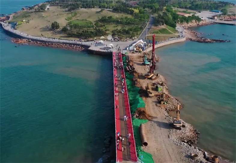 小麥島入島景觀帶(麥島路-小麥島)建設(shè)工程北起麥島路,南至小麥島,工程造價3000萬元,建設(shè)預(yù)應(yīng)力混凝土預(yù)應(yīng)力箱梁簡支梁橋一座,新的小麥島橋標(biāo)準(zhǔn)寬度由3.5米拓寬至10米,橫斷面布置為2.5米人行道、5米機動車道、2.5米人行道,局部區(qū)域增設(shè)外挑的步道和觀景臺,將最大的橋體寬度增加到20米?,F(xiàn)階段在東側(cè)新建了一條臨時鋼便橋,方便市民和游客在施工期間進(jìn)島游玩,項目建成后將起到人車分流的作用,在保障通車安全性的同時也大大提升了游客的游玩體驗感。為了保證本次樁基澆筑質(zhì)量,項目部提前3天通過護(hù)筒內(nèi)水平面的變化,來觀察海水漲落潮對樁基的影響,確保樁基混凝土澆筑能夠順利施工。
