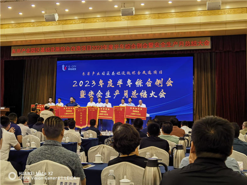 7月9日上午,東岸產(chǎn)業(yè)園區(qū)基礎(chǔ)設(shè)施綜合改造項(xiàng)目2023年度半年綜合例會(huì)順利召開(kāi),會(huì)上通報(bào)了各參建單位六月份及二季度考核情況,集團(tuán)分別獲得了92.43、91.66分考核成績(jī),均排名全線施工單位榜首,獲得甲方獎(jiǎng)勵(lì)50萬(wàn)元,并上臺(tái)進(jìn)行經(jīng)驗(yàn)分享匯報(bào)。