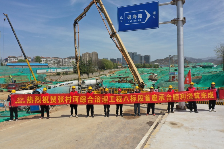 4月17日上午9點(diǎn)58分,集團(tuán)承建的科技園五路橋工程(青島市張村河綜合治理工程八標(biāo)段)首座承臺(tái)順利澆筑。