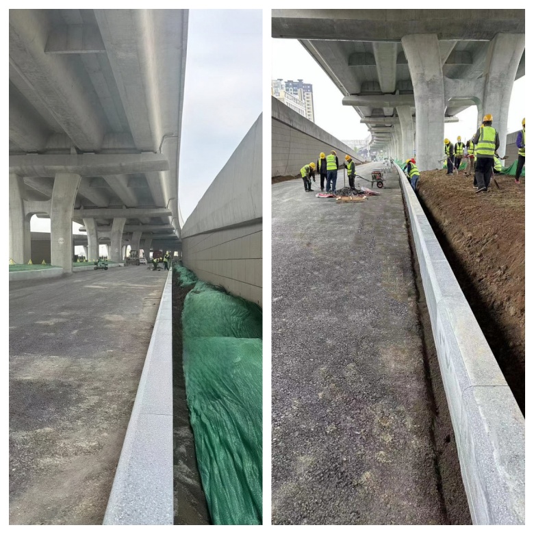 集團承建的重慶高架路4標段項目總工徐晨星向與會人員介紹了路沿石、人行道精細化施工及由集團子公司青島海德信達新型材料科技有限公司生產(chǎn)的新型仿石路沿石、仿石路面磚等新型環(huán)保建材,還展示了集團自主研發(fā)的移動式切割粉塵收集房并就市政工程基礎(chǔ)建設(shè)相關(guān)問題進行了深入探討和交流。隨后,與會人員實地查看了道路工程路基壓實,二灰基層及瀝青路面攤鋪、檢查井安裝、新型檢查井應用等精細化施工和班組建設(shè)情況。