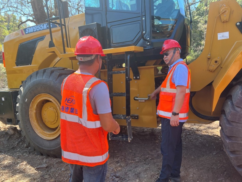 在項目部考察期間,集團董事長鞏光磊對項目前期營地建設、破碎站安裝調(diào)試、石料選址開采、施工機械維護保養(yǎng)等方面的工作表示了肯定,要求項目部充分做好開工前的準備工作,加大設備物資管理力度,進一步完善工作計劃,將各項工作做實、做細,全力迎接接下來的施工生產(chǎn)任務,確保按時保質(zhì)完成施工計劃。集團董事長鞏光磊詳細了解了項目部員工的工作生活情況,對大家的辛苦付出表示感謝,希望大家能夠在項目經(jīng)理的帶領下,團結一致,齊心協(xié)力,干出“海德”精神,打造“海德”品牌。同時,集團董事長鞏光磊強調(diào),大家身處異國他鄉(xiāng),無論是工作還是生活,一定要把安全放在首位,抓緊安全不放松。