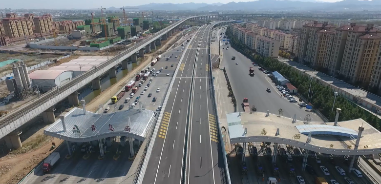 新機場高速連接線(雙埠-夏莊段)工程,是青島中心城區(qū)“六橫九縱”快速路網(wǎng)絡的重要組成部分,作為青島膠東國際機場的重要交通配套保障工程,西起女姑口大橋,東至青銀高速,長約9.8公里,全線以高架橋梁為主。橋梁主線以預制砼箱梁為主,規(guī)劃為封閉雙向四車道加應急停車帶,設計速度100公里/小時,是青島市中心城區(qū)到達新機場通行條件最好、效率最快的高速通道。新機場高速連接線工程主線橋共分為6個標段,參建施工單位11家,集團公司承建標段首個完成第一片“半倒T”隱形預制箱梁澆筑任務、首個完成箱梁吊裝、首個完成主線瀝青攤鋪,勇?lián)厝味啻蔚玫綐I(yè)主方發(fā)函表彰。并先后榮獲“2020年度青島市市政工程標準化示范工地”、“2020年山東省建筑工程優(yōu)質(zhì)結(jié)構工程”、“2021年度山東省建筑施工安全文明標準化工地”、“2023年山東省工程建設泰山杯獎”等多項殊榮。