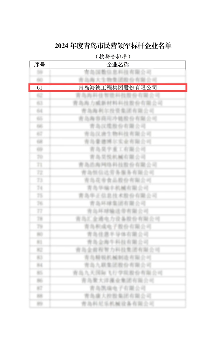 12月13日,青島市民營經(jīng)濟(jì)局發(fā)布《關(guān)于公布2024年度青島市民營領(lǐng)軍標(biāo)桿企業(yè)名單的通知》,集團(tuán)公司成功入選。這是集團(tuán)公司自2022年獲評(píng)首批“青島市民營領(lǐng)軍標(biāo)桿企業(yè)”之后連續(xù)第三年榮膺該稱號(hào)。