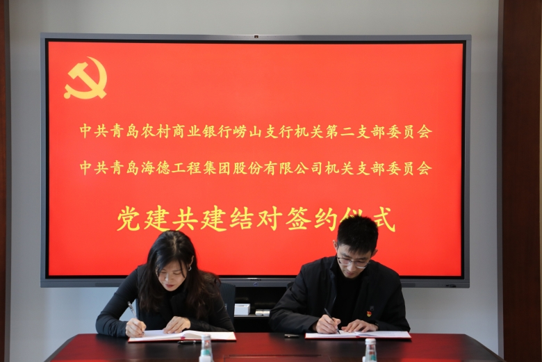 2025年11月20日上午,中共******青島海德工程集團(tuán)股份有限公司機(jī)關(guān)支部委員會與******青島農(nóng)村商業(yè)銀行嶗山支行機(jī)關(guān)第二支部委員會在集團(tuán)會議室成功舉行黨建共建簽約儀式。集團(tuán)公司黨總支部委員、常務(wù)副總裁白正海,集團(tuán)機(jī)關(guān)支部委員、總裁助理孟鵬,集團(tuán)總裁助理、財務(wù)投資部總經(jīng)理戶國昌出席儀式。