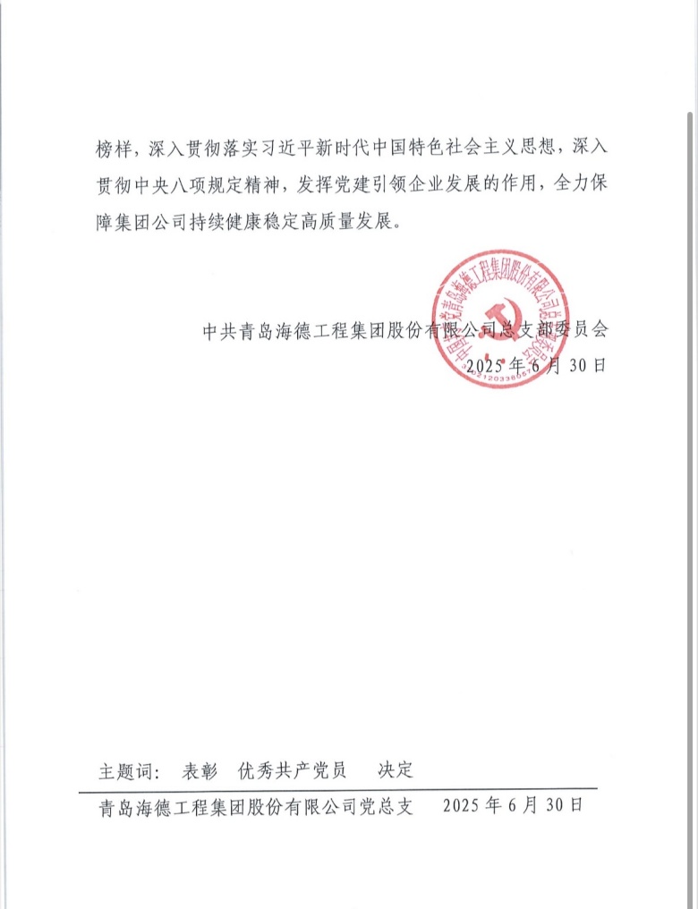 2025年11月20日上午,******青島海德工程集團(tuán)股份有限公司機(jī)關(guān)支部委員會(huì)與******青島農(nóng)村商業(yè)銀行嶗山支行機(jī)關(guān)第二支部委員會(huì)在集團(tuán)會(huì)議室成功舉行黨建共建簽約儀式。集團(tuán)公司黨總支部委員、常務(wù)副總裁白正海,集團(tuán)機(jī)關(guān)支部委員、總裁助理孟鵬,集團(tuán)總裁助理、財(cái)務(wù)投資部總經(jīng)理戶國昌出席儀式。